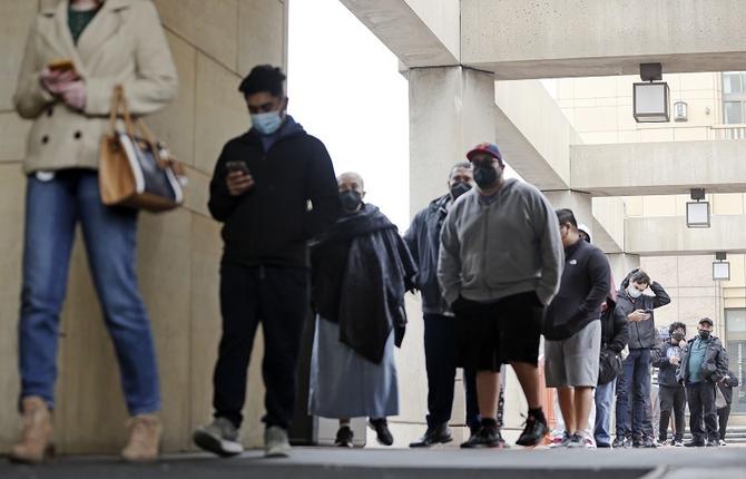 △1月7日,美國民眾排隊等待進(jìn)行新冠檢測。