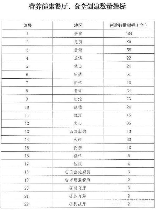 昆明信息港訊 實習記者王奕然 近日,記者從云南省衛(wèi)生健康委員會官網(wǎng)了解到,健康云南行動推進委員會辦公室印發(fā)了《云南省營養(yǎng)健康餐廳、營養(yǎng)健康食堂試點建設工作實施方案(試行)》(以下簡稱《方案》)?!斗桨浮访鞔_,根據(jù)國家國民營養(yǎng)指導委員會1個/10萬人要求,全省需創(chuàng)建營養(yǎng)健康餐廳、營養(yǎng)健康食堂484家,其中昆明有85家。