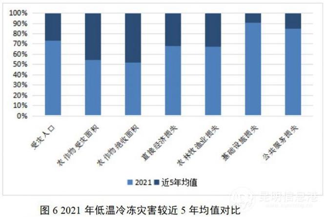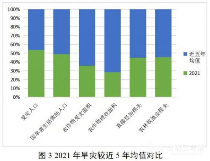 與近5年均值相比,受災(zāi)人口增加14.79%,因旱需生活救助人口下降5.03%、農(nóng)作物受災(zāi)面積下降44.85%、農(nóng)作物絕收面積下降60.8%、直接經(jīng)濟(jì)損失下降18.54%。全年大理、麗江、曲靖受旱災(zāi)影響較重,經(jīng)濟(jì)損失分別為3.15、3.15、3.07億元,迪慶、昆明旱情較輕,經(jīng)濟(jì)損失分別為1191、1202萬元。