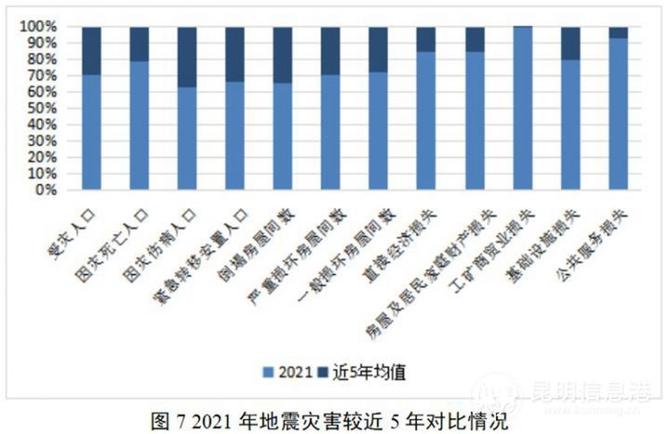 2021年,因地震災(zāi)害共造成玉溪、保山、昭通、普洱、臨滄、楚雄、大理、德宏10個(gè)州市23個(gè)縣市區(qū)19.61萬人次不同程度受災(zāi),因?yàn)?zāi)死亡3人,緊急避險(xiǎn)轉(zhuǎn)移12940人次,緊急轉(zhuǎn)移安置31163人次,需緊急生活救助32676人次;房屋倒塌1856間,嚴(yán)重?fù)p壞19103間,一般損壞81082間;直接經(jīng)濟(jì)損失34.15億元。