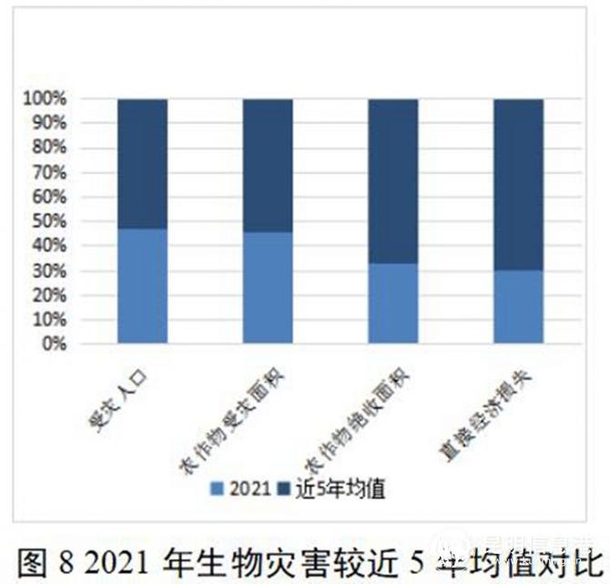 2021年因生物災(zāi)害共造成臨滄、紅河、文山、版納、大理5個(gè)州市12個(gè)縣市區(qū)18.51萬人次不同程度受災(zāi);農(nóng)作物受災(zāi)面積18.28千公頃,絕收面積0.3千公頃;直接經(jīng)濟(jì)損失2466.36萬元。