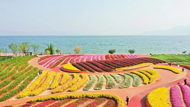 從高空俯瞰滇池,湖盆南北長東西窄,湖體北部海埂橫亙東西,將湖體分為內(nèi)外兩部分,水光瀲滟,“一線平分秋色”的美景盡收眼底。