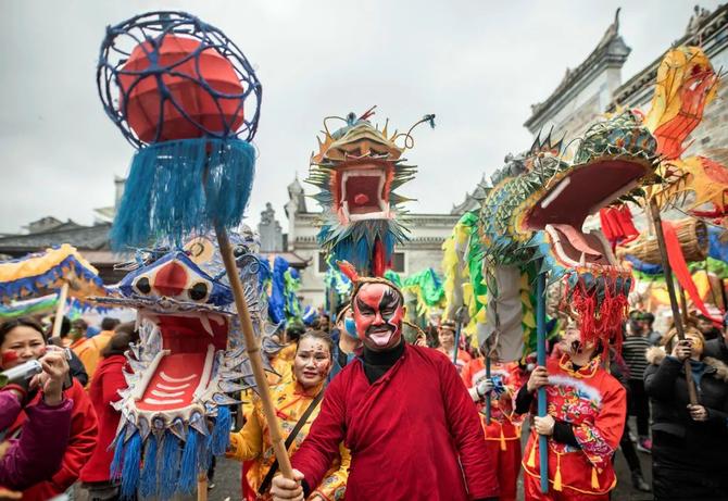 唱漢戲、吟故事、玩龍燈是隆里的三大文化瑰寶。春節(jié)期間,人們還要耍龍、畫花臉,引來(lái)八方游客鬧新春。