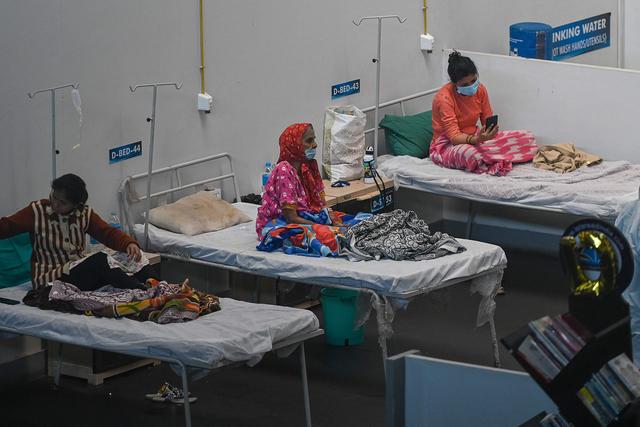 1月11日,病人們在印度新孟買一處新冠隔離中心休息。新華社/法新
