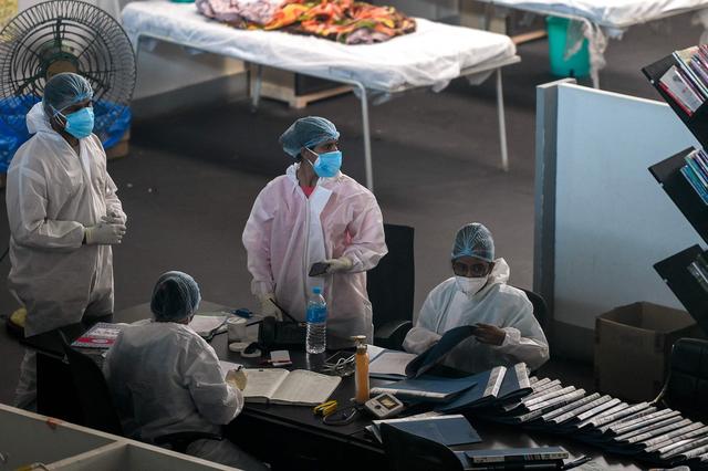 1月11日,醫(yī)護(hù)人員在印度新孟買一處新冠隔離中心工作。新華社/法新
