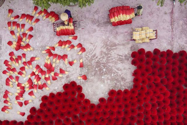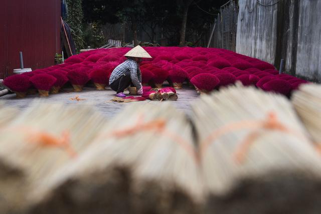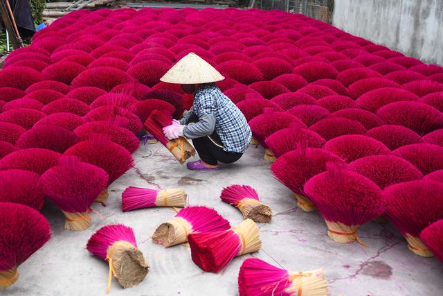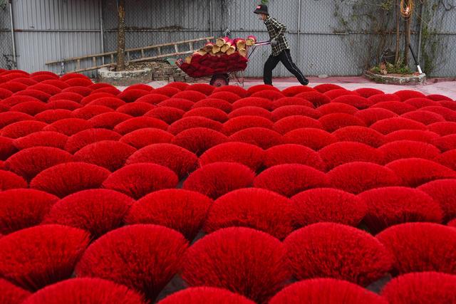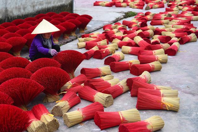 越南民眾有在春節(jié)期間到寺廟上香祈福的習(xí)俗。隨著春節(jié)臨近,大批制香工人加緊工作,以滿足市場需求。