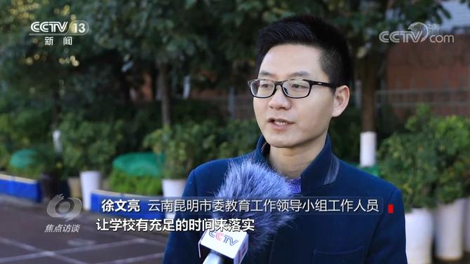云南昆明市委教育工作領導小組工作人員徐文亮說:“把90%以上的不必要督檢考評和社會事務擋在校門之外,讓老師可以有一個安心從教的環(huán)境。比如督檢考評,現(xiàn)在只保留了一項綜合考評,而且會在年初就把考評的事項和標準提前發(fā)給學校,讓學校有充足的時間來落實,不會給學校正常的教育教學造成影響。”