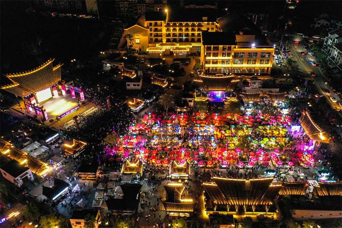 澄江市撫仙湖·廣龍小鎮(zhèn)星光夜市(2020年10月2日攝)。云南海誠實業(yè)集團股份有限公司 供圖