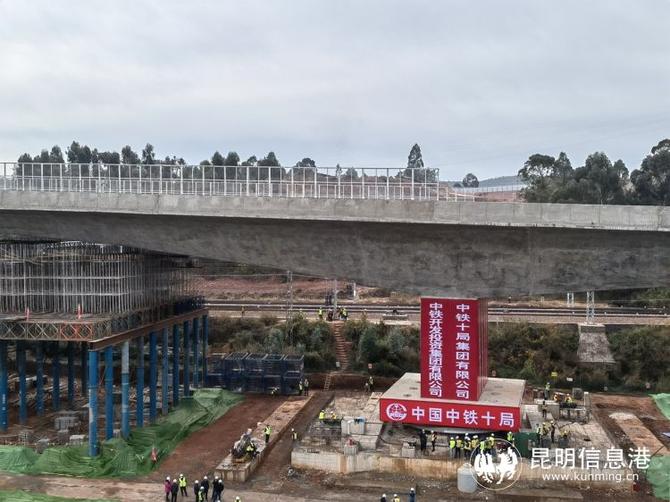 昆明信息港訊 記者上官艷君 記者從中國鐵路昆明局工管公司獲悉,1月12日13時(shí)40分,經(jīng)過70多分鐘的持續(xù)轉(zhuǎn)體,云南玉(溪)楚(雄)高速公路全線控制性工程——楚雄樞紐小郭邑特大橋順利完成90°轉(zhuǎn)體,“華麗轉(zhuǎn)身”成功上跨廣(通)大(理)鐵路,創(chuàng)下同類橋梁最大轉(zhuǎn)角、最大縱坡兩項(xiàng)國內(nèi)紀(jì)錄。