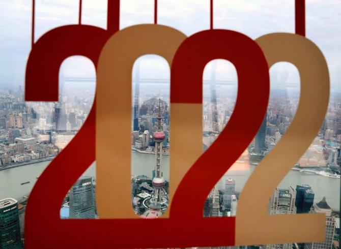 2022年1月1日,上海環(huán)球金融中心100層觀光廳的“2022”新年裝飾與陸家嘴的樓群相映襯。新華社記者 劉穎 攝