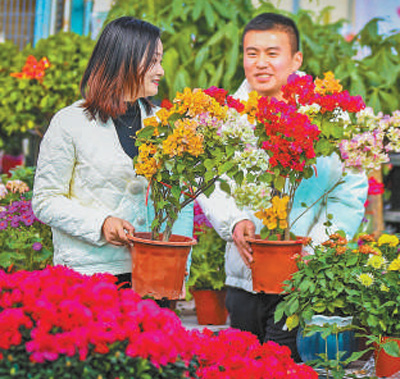 1月15日,在甘肅酒泉花卉市場,鮮花銷售火爆。