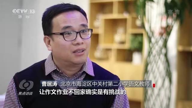 北京市海淀區(qū)中關(guān)村第二小學(xué)語(yǔ)文教師曹居濤說(shuō):“比如說(shuō)高年級(jí)的作文,讓作文作業(yè)不回家確實(shí)是有挑戰(zhàn)的,所以我們就對(duì)教與學(xué)的方式進(jìn)行了大膽的嘗試和改變。從習(xí)作布置的時(shí)間上進(jìn)行了改變,叫任務(wù)前置。孩子學(xué)習(xí)單元之初,要了解這一單元當(dāng)中的習(xí)作主題是什么,讓孩子的習(xí)作和生活建立聯(lián)系?!?/p>