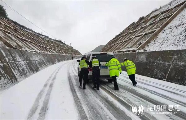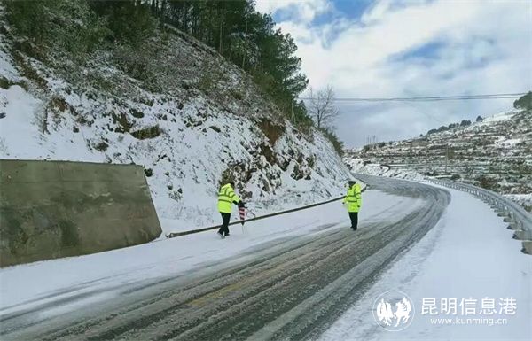 在倘新線九龍路段、昆雪線轉(zhuǎn)龍路段、轉(zhuǎn)烏公路烏蒙路段等積雪結(jié)冰較少的路段進(jìn)行巡邏檢查,同時(shí)對(duì)結(jié)冰情況較為嚴(yán)重的撒營盤至則黑、馬鹿塘路段進(jìn)行管制,清除積雪冰層,避免發(fā)生側(cè)滑事故。