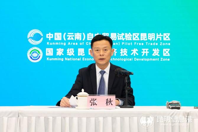 昆明信息港訊 記者高菁徽 通訊員李依陽 1月17日,中國(云南)自貿(mào)區(qū)昆明片區(qū)(昆明經(jīng)開區(qū))2022年首場制度創(chuàng)新專題新聞發(fā)布會召開,區(qū)黨工委委員、制度創(chuàng)新部部長張秋出席新聞發(fā)布會,并就片區(qū)2021年制度創(chuàng)新亮點成績及今年擬開展重點工作進行介紹。