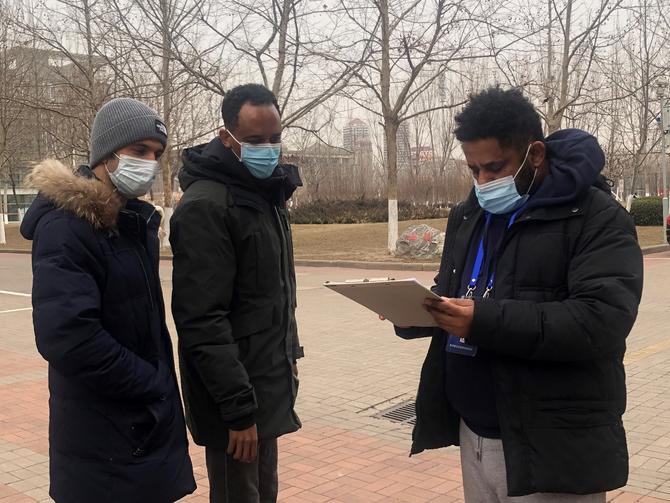 天津啟動(dòng)全員核酸檢測(cè)后,天津職業(yè)技術(shù)師范大學(xué)國(guó)際學(xué)院輔導(dǎo)員郭梁微信收到了埃塞俄比亞博士研究生艾華和貝寧本科生約翰的“請(qǐng)戰(zhàn)書”——他們希望參加全校核酸檢測(cè)的志愿服務(wù)工作。