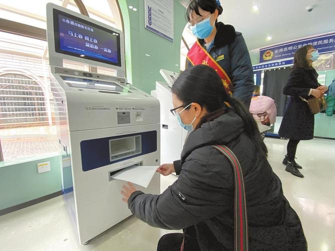 “放置‘e辦通’政務服務自助機相當于設置了一個功能齊全的辦事窗口。這臺機器可提供治安、交警、出入境、人社、醫(yī)保等108項辦理事項服務,實現(xiàn)多個部門的業(yè)務辦理。”度假區(qū)行政審批局營商環(huán)境科科長吳芬遠介紹,除了省內的業(yè)務,“e辦通”還與四川、重慶、廣西、海南、福建、湖北、河南、黑龍江8個省區(qū)市開通了部分事項的“跨省通辦”?!袄?,市民在這幾個省份出現(xiàn)了交通違章,在昆明就能處理。”吳芬遠說。