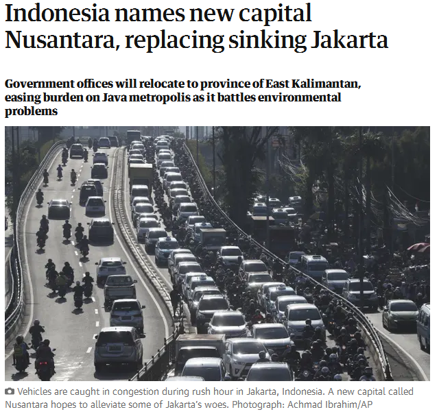 《經濟日報》稱,新首都“Nusantara”在雅加達東北方向約2000公里,雅加達是印度尼西亞目前的金融和商業(yè)中心,人口約1000萬,由于面臨下沉危機,加上希望將經濟發(fā)展轉移到加里曼丹島東部地區(qū),因此2019年宣布遷都,但受到疫情影響,預計最快2024年開始搬遷。