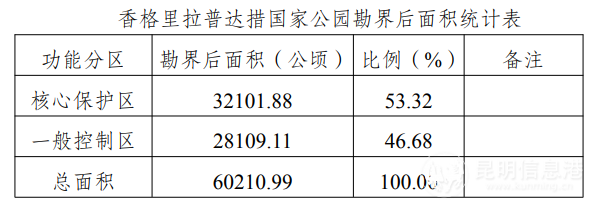 昆明信息港訊 1月17日,云南省林業(yè)和草原局發(fā)布香格里拉普達(dá)措國(guó)家公園勘界立標(biāo)成果,經(jīng)省級(jí)專家論證,香格里拉普達(dá)措國(guó)家公園總面積60210.99公頃,核心保護(hù)區(qū)勘界面積32101.88公頃,占總面積的53.32%;一般控制區(qū)勘界面積28109.11公頃,占總面積的46.68%。