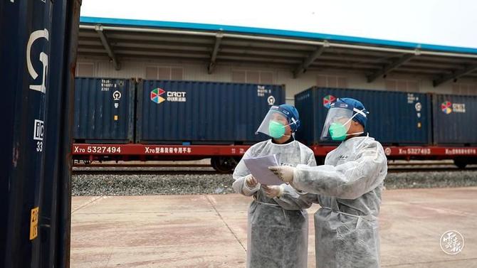 昆明海關(guān)所屬勐臘海關(guān)關(guān)員對中老鐵路國際貨物列車集裝箱核對封志 昆明海關(guān)供圖