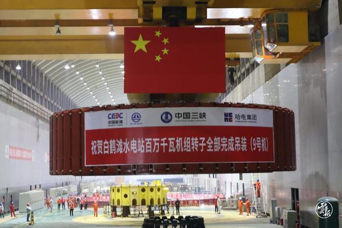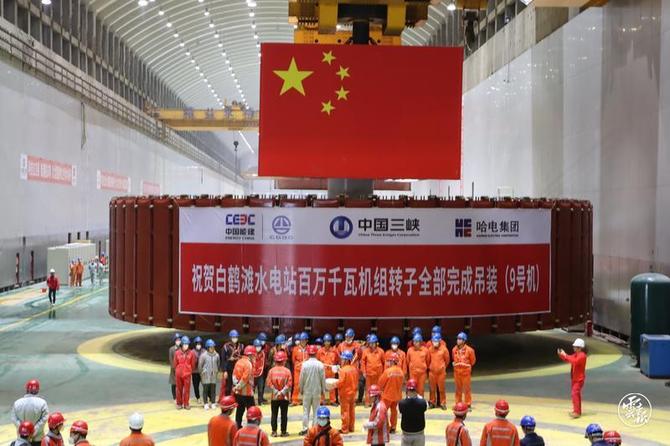 1月18日,中國能建葛洲壩機電公司承擔(dān)安裝與調(diào)試的世界在建裝機規(guī)模最大的水電站——白鶴灘水電站最后一臺百萬千瓦水電機組(9號)轉(zhuǎn)子吊裝就位,標(biāo)志著電站16臺百萬千瓦水電機組轉(zhuǎn)子全部安裝完成。
