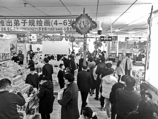在新知圖書城,家長排長隊(duì)買書。