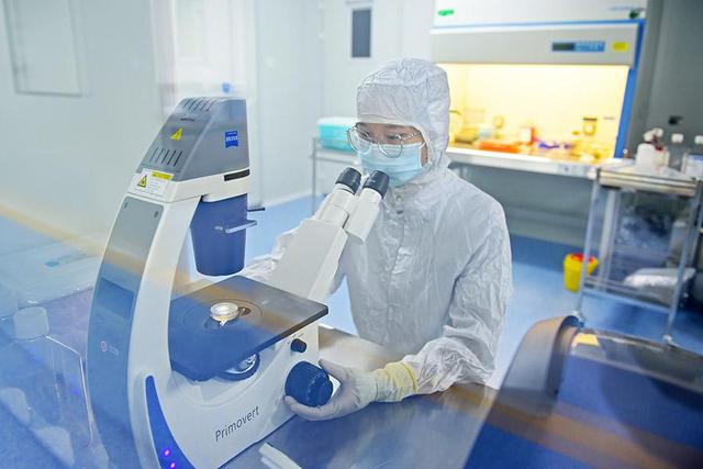 在保定·中關(guān)村創(chuàng)新中心,河北三臧生物科技有限公司工作人員在觀察細(xì)胞生長(zhǎng)情況(2021年8月20日攝)。新華社記者 朱旭東攝