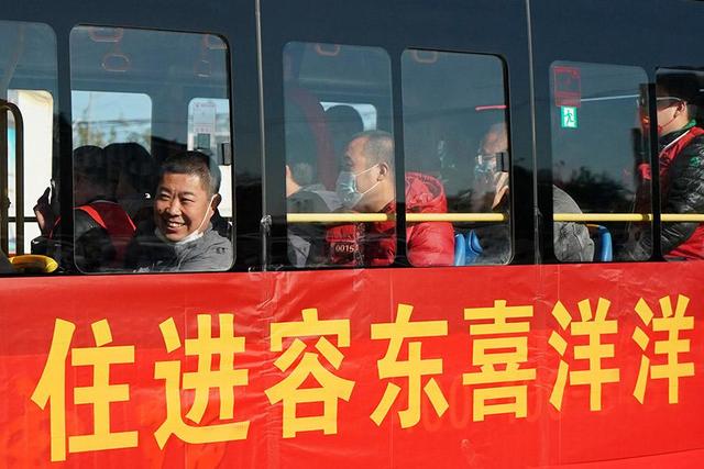 2021年10月19日,雄安新區(qū)容東片區(qū)首批安置住房分配工作啟動(dòng),參加搖號(hào)的群眾乘坐大巴車進(jìn)入搖號(hào)工作現(xiàn)場(chǎng)。新華社記者 牟宇攝