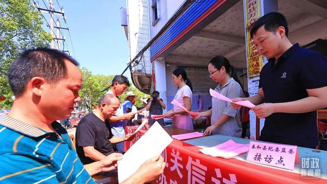 △2021年7月,江西吉安,泰和縣紀委監(jiān)委干部開展信訪舉報宣傳活動。(圖/視覺中國)