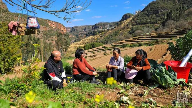 △2021年2月,云南曲靖,陸良縣紀委干部走進田間地頭,了解惠民政策落實情況。(圖/視覺中國)