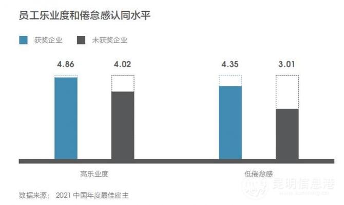 從數(shù)據(jù)可以看到,獲獎(jiǎng)企業(yè)在雇主品牌六大維度上的得分,均高于未獲獎(jiǎng)企業(yè),尤其在薪酬福利、雇主形象方面,二者得分差距明顯。與大型企業(yè)相比,中小企業(yè)的優(yōu)勢(shì)在于為員工提供更優(yōu)渥的薪酬和多樣化的福利,有助于提高員工的穩(wěn)定性和忠誠(chéng)度。另外,企業(yè)對(duì)員工權(quán)益的保障,對(duì)社會(huì)責(zé)任的承擔(dān),也有助于雇主良好形象的樹(shù)立,有利于提升員工認(rèn)可感、信任感及自豪感,激發(fā)員工自驅(qū)力。