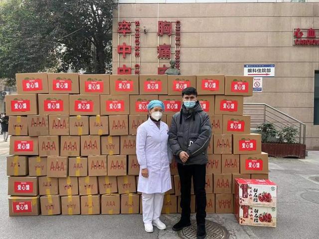 “西安發(fā)生疫情后,我看到醫(yī)護(hù)人民們都在夜以繼日的抵抗疫情,覺得他們非常辛苦,就想把我的一點(diǎn)心意帶到西安?!?月17日早上11點(diǎn)左右,西安市第一醫(yī)院收到了一份特殊的捐贈,一位來自新疆伊寧市的27歲小伙子約爾開西·開比,從他的家鄉(xiāng)帶來3000個馕和兩箱石榴,親自送到了西安市第一醫(yī)院醫(yī)護(hù)人員的手上。