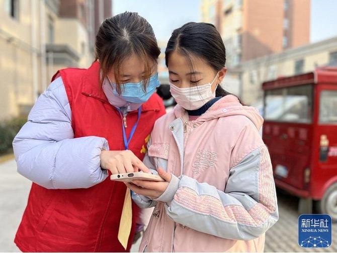 1月15日,濮陽市臺前縣組織開展全員核酸檢測工作。1200名醫(yī)護(hù)人員奔赴核酸檢測一線,5小時(shí)完成29.13萬人核酸采樣。各鄉(xiāng)鎮(zhèn)、縣直機(jī)關(guān)干部職工分赴所分包行政村、社區(qū)等,組織引導(dǎo)群眾有序開展檢測。圖為臺前縣委組織部工作人員在為一小學(xué)生講解核酸檢測流程。(李萌攝)