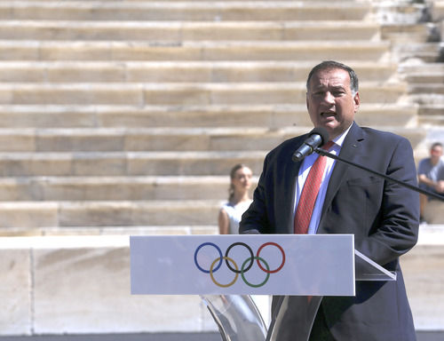 資料圖:2019年9月17日,希臘奧委會(huì)主席卡普拉洛斯在2020洛桑冬季青奧會(huì)點(diǎn)火儀式上致辭。新華社發(fā)(馬里奧斯·羅洛斯攝)