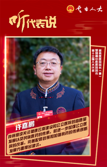我將繼續(xù)關注健康云南建設和公立醫(yī)院的高質(zhì)量發(fā)展以及民族醫(yī)藥的傳承。根據(jù)我們目前公立醫(yī)院發(fā)展當中存在的一些配套的政策還不完善,以及彝藥傳承發(fā)展當中存在的困難和問題,我將就進一步加強公立醫(yī)院的改革,完善配套政策和加強彝藥的傳承創(chuàng)新發(fā)展方面提出我的建議。