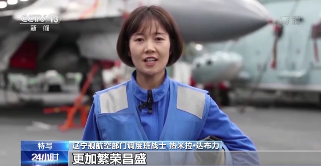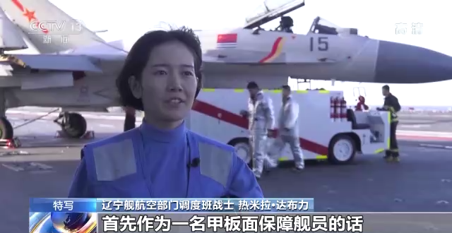 遼寧艦航空部門調(diào)度班戰(zhàn)士 熱米拉·達(dá)布力:就是因為它難,然后就是想挑戰(zhàn)一下,跟殲-15大概就是離得最近的位置,然后看看它放飛,然后回收。這種感覺就很真實。當(dāng)它放飛成功的時候,我就覺得很有成就感,很自豪。是我保障的殲-15,它又成功起飛了,就有這種感覺。