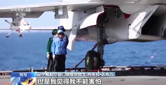 遼寧艦航空部門調(diào)度班戰(zhàn)士 熱米拉·達(dá)布力:它那個系留索掛在殲-15上的時候,要是開車系留索會繃得很緊,它要是繃斷了我該怎么辦?因為我當(dāng)時就站在旁邊,我想過這種后果,但是我覺得我不能害怕。