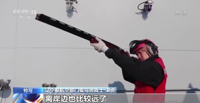 遼寧艦航空部門驅(qū)鳥班戰(zhàn)士湛虎:在渤海海域離陸地比較近,那個地方鳥類活動比較頻繁,平時可能鳥類可以達(dá)到上百只,現(xiàn)在深入遠(yuǎn)海大洋,離岸邊也比較遠(yuǎn)了,所以能看到鳥類的活動明顯減少。就算現(xiàn)在鳥類比較少,我們也不能放松警惕。