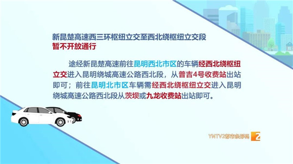 值得注意的是,如果走新昆楚高速從楚雄返回昆明,前往昆明西北市區(qū)的車輛,經(jīng)西北繞樞紐立交進(jìn)入昆明繞城高速公路西北段,可從普吉4號(hào)收費(fèi)站下高速;前往昆明北市區(qū)的車輛,需經(jīng)西北繞樞紐立交進(jìn)入昆明繞城高速公路西北段,從茨壩或九龍收費(fèi)站下高速。