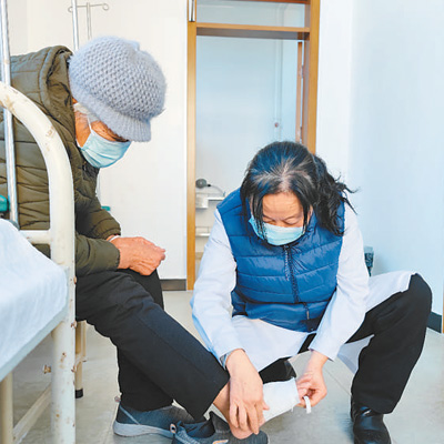“好嘞,咱到診室看看。”馬愛民給排隊的老人量完血壓,帶著席奶奶走進(jìn)了診室,細(xì)心地幫奶奶脫下襪子。
