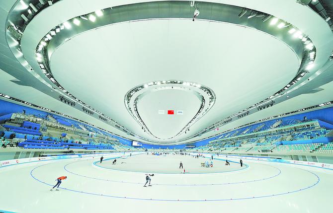 二氧化碳跨臨界直冷制冰,這項(xiàng)技術(shù)是目前世界上最環(huán)保的制冰技術(shù),碳排放趨近于零;同時也是最先進(jìn)的制冰技術(shù),冰面溫差可控制在0.5℃以內(nèi)。這樣制冷相比較傳統(tǒng)方式不僅效能提升20%以上,而且制冷非常均勻,不會出現(xiàn)各個部位溫度不一樣、冰面硬度不均勻的情況。在以0.001秒計(jì)時的高水平競技中,這都是關(guān)鍵性的因素。同時,國家速滑館將制冷產(chǎn)生的余熱用于運(yùn)動員生活熱水、融冰池融冰、冰面維護(hù)澆冰等,一年可節(jié)省約200萬度電。(冬奧會刊記者 潘之望 劉平 武亦彬 攝)