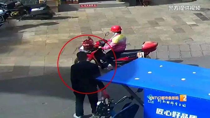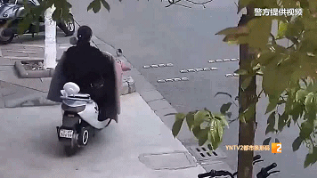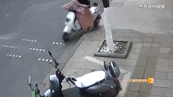 公共視頻顯示,李女士從銀行取錢出來后,把錢裝在一個白色手提袋內(nèi),便騎上了電動車。
