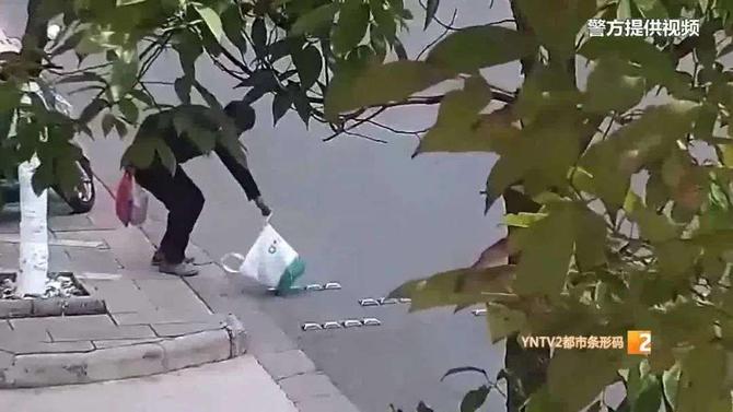 在李女士過街時,白色手提袋掉到了地上。不一會兒,一名穿黑色衣服的男子路過時看到了手提袋,提起來看了一眼后,轉(zhuǎn)身離開。