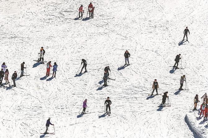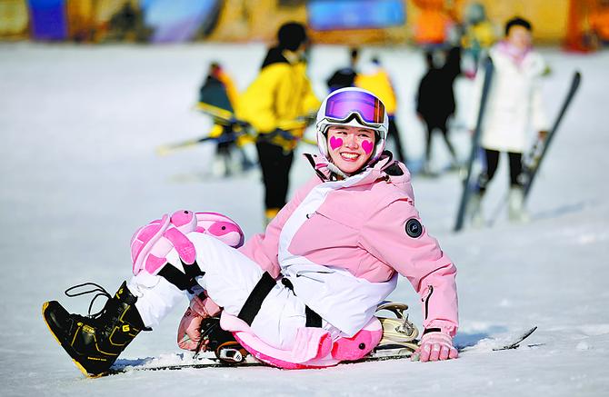 山西市民體驗(yàn)冰雪運(yùn)動(dòng),快樂(lè)滑雪迎冬奧。