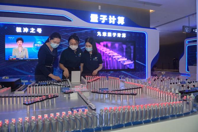 參會(huì)人員在合肥舉行的2021量子產(chǎn)業(yè)大會(huì)上參觀“九章”量子計(jì)算原型機(jī)模型(2021年9月18日攝)。 新華社記者 韓旭 攝