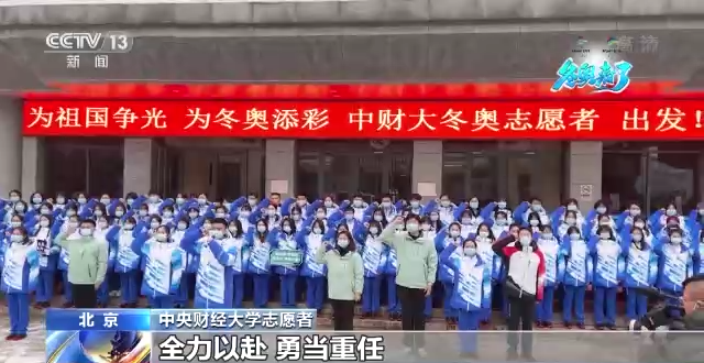 中央財(cái)經(jīng)大學(xué)志愿者:服從大局,聽從指揮,全力以赴,勇當(dāng)重任,為祖國增光,為冬奧添彩。