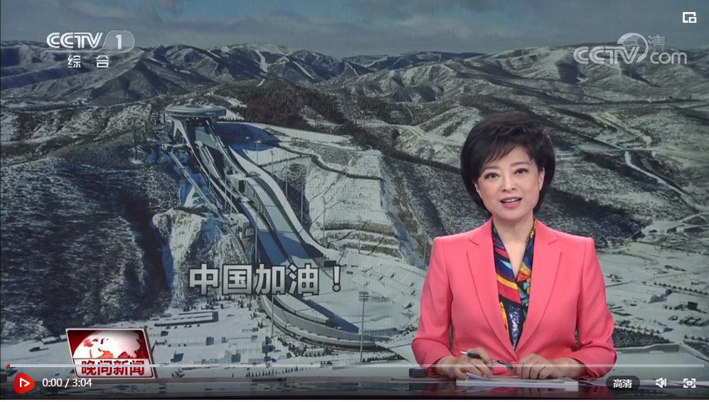 總臺記者 李武軍:站在這里能夠非常清晰地看到兩周臺和三周臺的外貌。同以往奧運會不同的是,以往奧運會都是采用的用雪堆成的起跳臺,而這次則采用的一個金屬材質(zhì)的結(jié)構。
