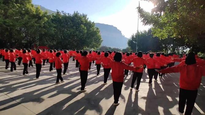 下課鈴聲響了,三個(gè)年級(jí)的女生風(fēng)一樣下樓,大紅色的校服在華坪冬日的陽(yáng)光中閃閃發(fā)亮。校園里,殷紅的國(guó)旗對(duì)著太陽(yáng);背后獅子山,“中國(guó)共產(chǎn)黨萬(wàn)歲”的巨大紅色標(biāo)語(yǔ)挺立山頭;學(xué)生方隊(duì)列陣完畢,一曲《萬(wàn)疆》歌聲嘹亮。我們很難用文字形容聽到歌聲時(shí)的心靈震撼,連拿著拍攝云臺(tái)的手,都時(shí)不時(shí)顫抖……