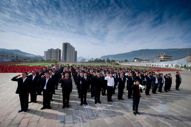 華坪女子高中的辦學(xué)宗旨是“革命傳統(tǒng)立校,紅色文化育人”。高一新生入學(xué)先要抄寫黨章,然后看革命電影聽先烈故事,每周一舉行重溫入黨入團(tuán)的宣誓儀式,每天都高唱紅色歌曲。不止一個(gè)女高學(xué)生向我們坦陳:剛開始扭扭捏捏張不開嘴,后面越唱紅歌越帶勁。面對(duì)議論,她們的態(tài)度是:說(shuō)去吧,咱成績(jī)擺著呢!