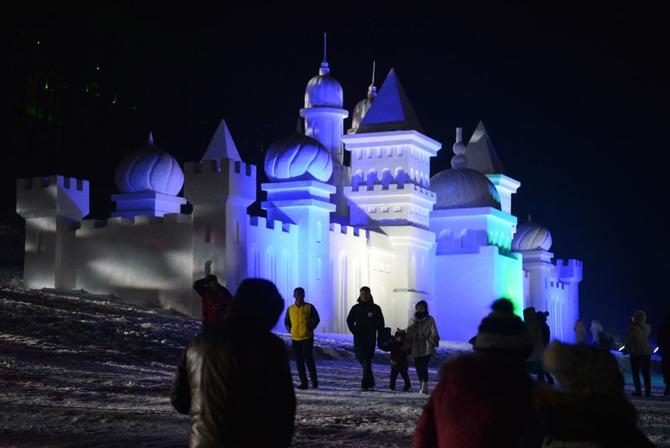 游客在阿爾山市冰雪節(jié)期間參觀雪雕城堡。新華社記者 鄒予 攝