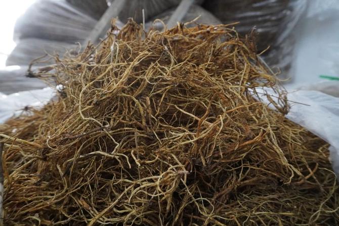 地處遼東的清原滿族自治縣椽子溝村村委會(huì)旁的一棟灰色建筑里,記者進(jìn)門就聞到一股草藥味道。烘干完成的龍膽草,壘起了一座座“小山垛”,準(zhǔn)備銷往南方。